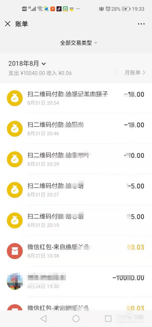 系统就主动 弹出了你所需要月份的账单。我们可以看下图我们这儿显示的是2018年8月份的账单,可以看到总的收入和支出以及具体列表;