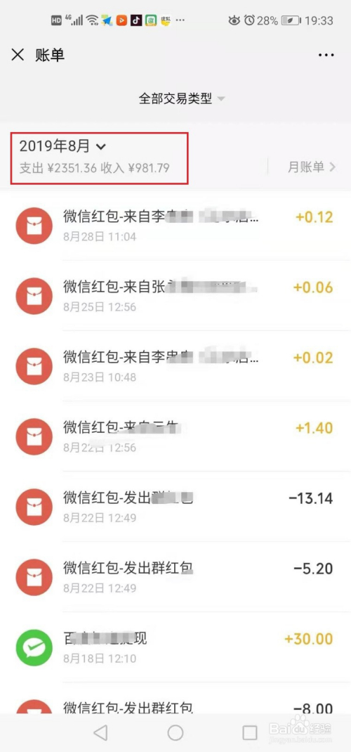 进入账单列表,我们可以看到当前月份的账单,这个是按时候挨次,倒序摆列的;