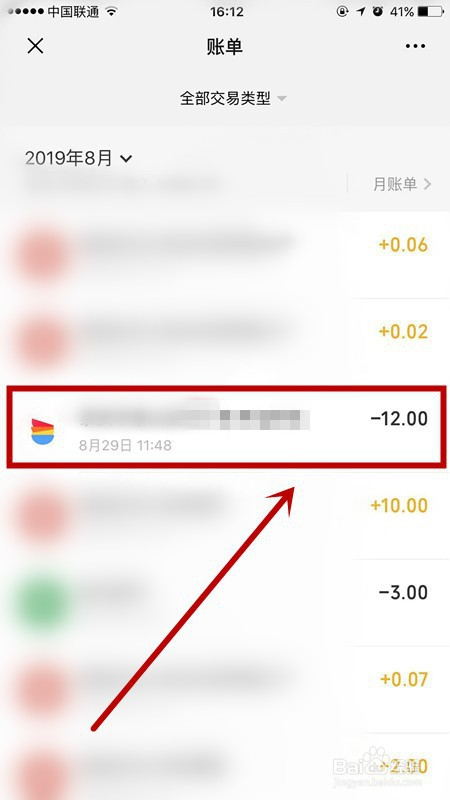在账单中找到你需要退条目的那笔账单,点击进去。