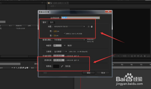 首先就是AE合当作的新建,新建合当作的尺寸要按照现实的视频建造需求来确定。
