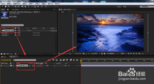 将导入的素材进行AE时候线上的拖拽添加,这样就可以在右上角进行素材的预览