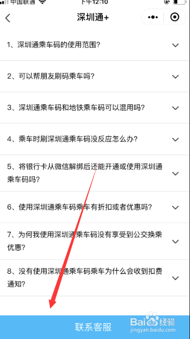 进入深圳通页面后,如下图红标位置所示,点击页面中的联系客服进口。