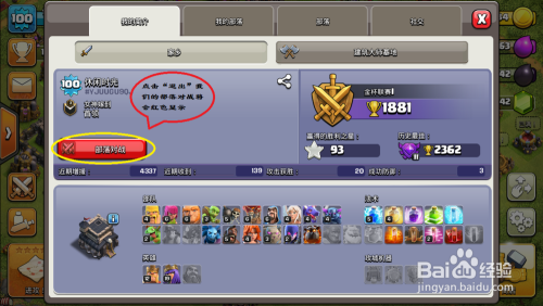点击“部落对战”会跳出选项,点击“退出”暗示你退出部落战。