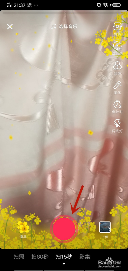然后可以让共同画面加倍美不雅,点击下面的【拍摄】按钮,如图所示。