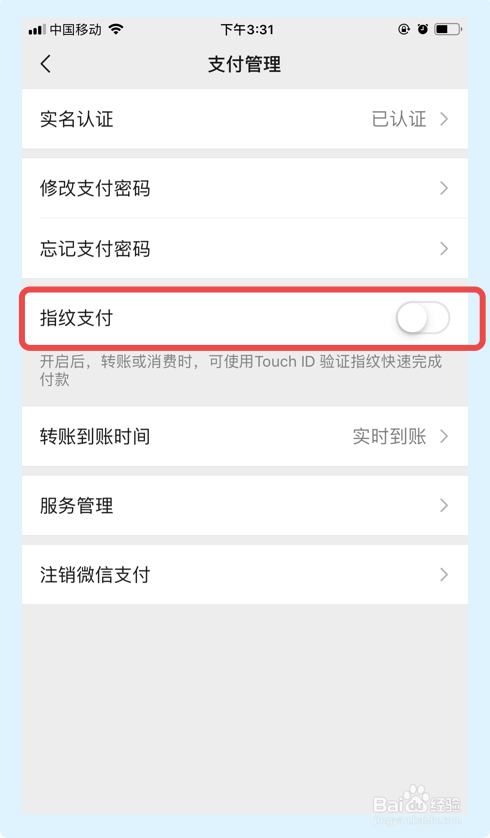开启指纹支付功能,这样可以让本身的账户加倍的平安。