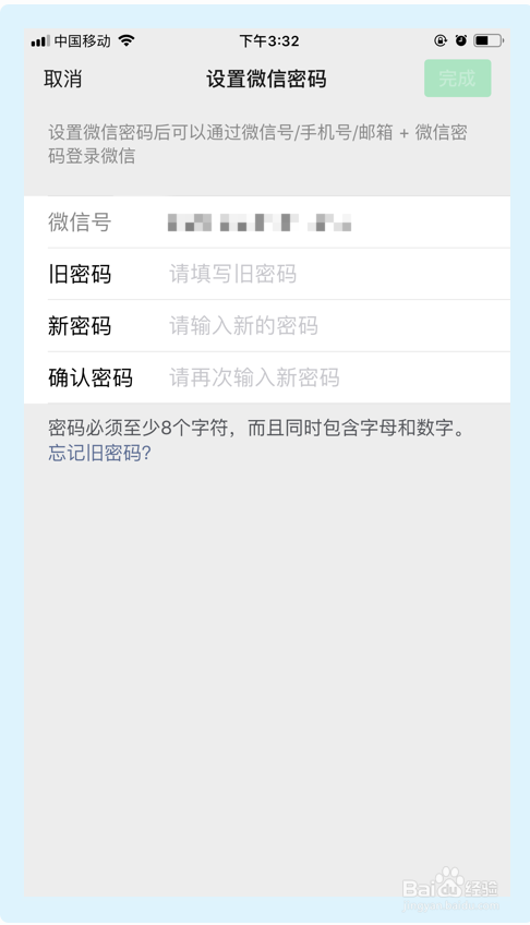 打开微信app,在账户与平安界面,选择微信密码,设置一个复杂的微信密码