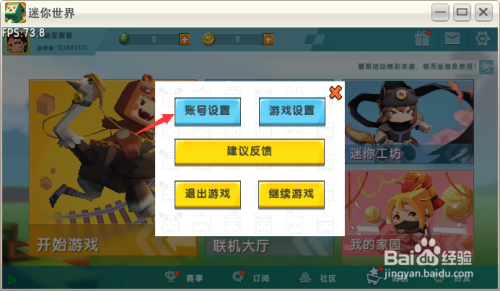 进入设置界面,点击按钮账号设置