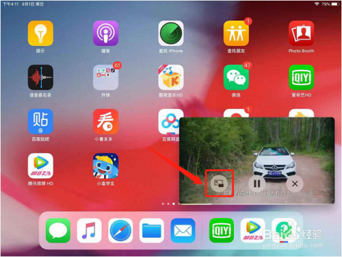 进入画中画模式今后,按下Home键,iPad会返回本家儿界面,可是画中画窗口仍然可以留在本家儿界面正常播放;