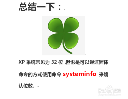 XP系统常见为32位,但也是可以经由过程窗体号令的体例利用号令 systeminfo来确认位数。