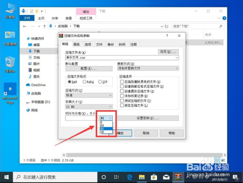 在打开的下拉菜单中,按照需要压缩的文件大小,选择合适的朋分文件大小的单元,如图