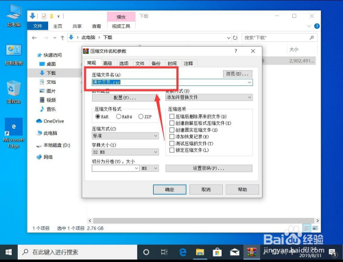 打开WinRAR压缩界面,首先输入压缩文件的名称