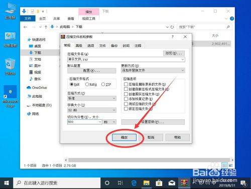 然后点击下面的“确定”起头压缩文件