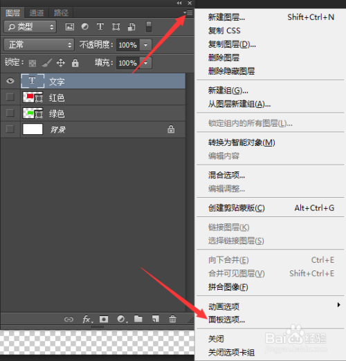 图层面板的设置,更好的办理现有图层。点击图层面板的右上角打开菜单,选择面板选项,可以设置缩略图的大小和内容等属性。