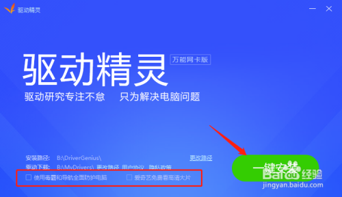 最后,切换到驱动一栏,点一键安装就可以了,他会主动把你电脑缺的网卡、显卡、声卡、U盘、鼠标等驱动全数安装,之后电脑重启几回就可以了