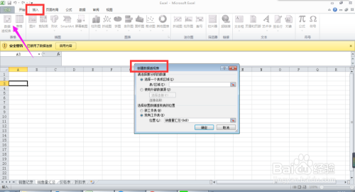 首先,选中任一单位格(即插入位置),点击【插入】选项卡,在其下的【表格】功能组中点击【数据透视表】,弹出【建立数据透视表】对话框。