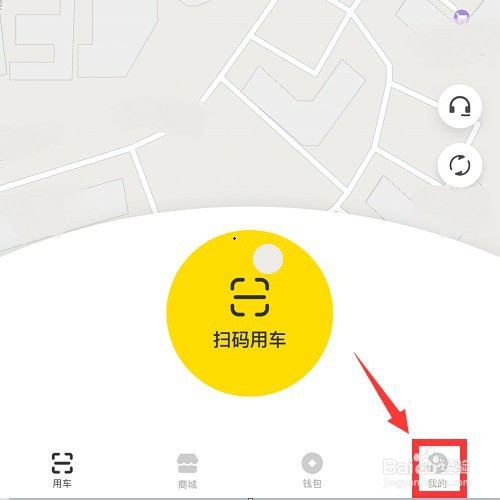 进入到小黄车客户端之后,我们会看到右下角有一个“我的”选项,点击它。