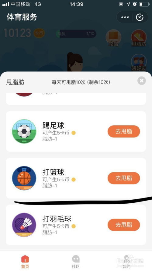 点击右上角甩脂