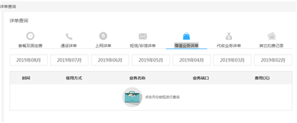 点击详单查询,进入后可以看到近几个月的详情,先选摘要查询的月份,然后可以依次查询套餐及固定费,通话详单,上网详单,增值营业详单等信息。