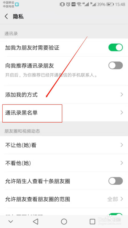 然后点击【通信录黑名单】。