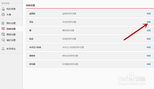 在动静设置界面,点击评论后的【编纂】。
