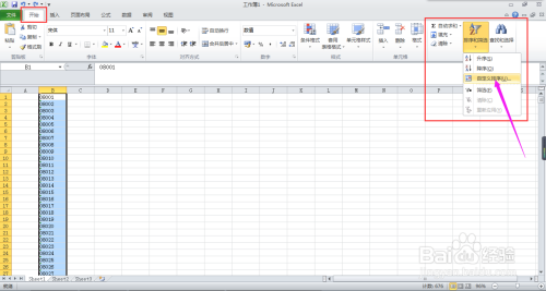 ④选中数据区域,点击【起头】选项卡下【编纂】功能组中的【排序和筛选】按钮,鄙人拉列表中选择【自界说排序】。