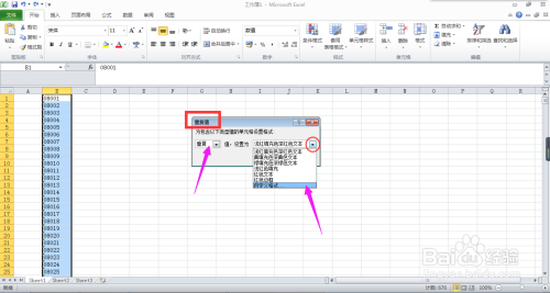 在【列】下方的【本家儿要关头字】列表框中选择数据地点列的名称或者题目(这里是”列B“);