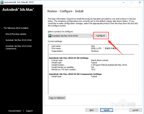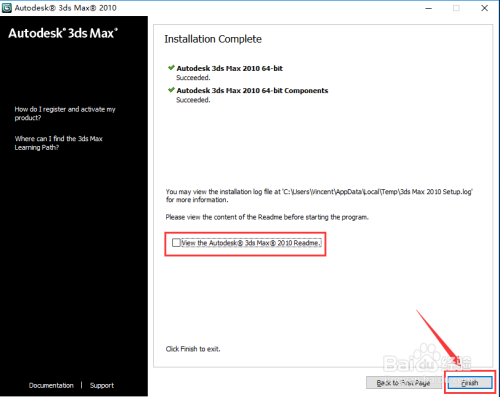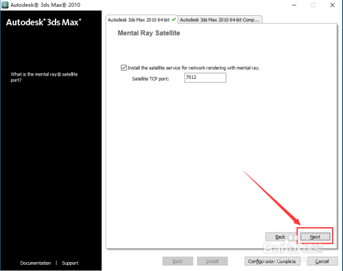 勾选:“Autodesk 3ds Max 2010 64bit Components”,点击“Next”。