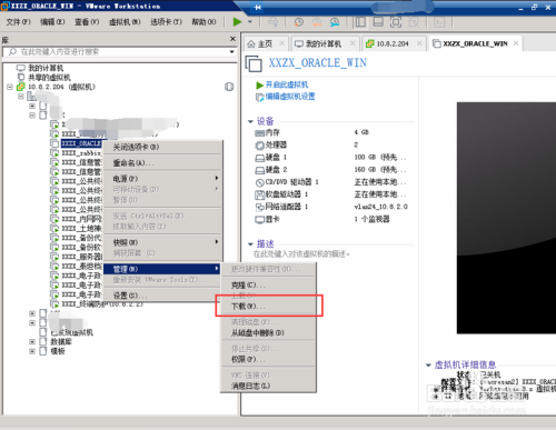 毗连到长途办事器后,可以将长途办事器上的虚拟机下载到当地本家儿机,选择长途办事器上的虚拟机,点击鼠标右键—“办理”—“下载”。