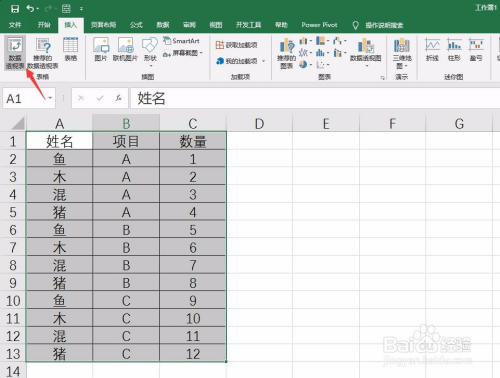选择数据源区域,点击“插入”,选择“数据透视表”,如下图所示: