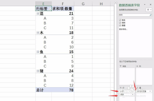 然后将字段拖动添加到分歧的区间中,如下图所示: