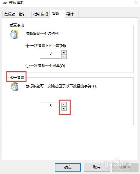 点击滑轮按钮后,在页面中找到程度滚动模块,点击输进款旁边的上/下三角符,确认后点击“应用”按钮。