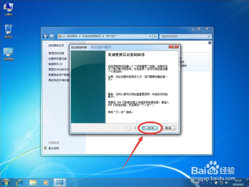 打开建立密码重设盘对话框后,点击“下一步”