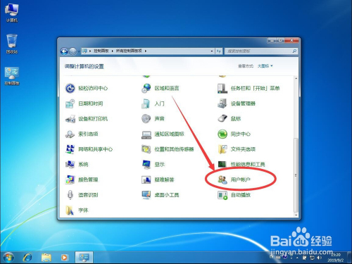 然后在节制面板列表中,点击选择“用户账户”