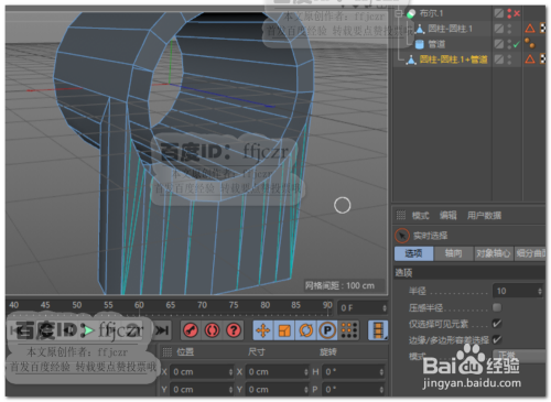 将上步的布尔组进行当前状况转为对象,将新得的对象与圆管进行布尔归并;删除归并后重叠的面,清理多余的点;用封锁多边形孔洞将清理好的孔洞补上。此时两侧会各有一条N-gon线,不消管。