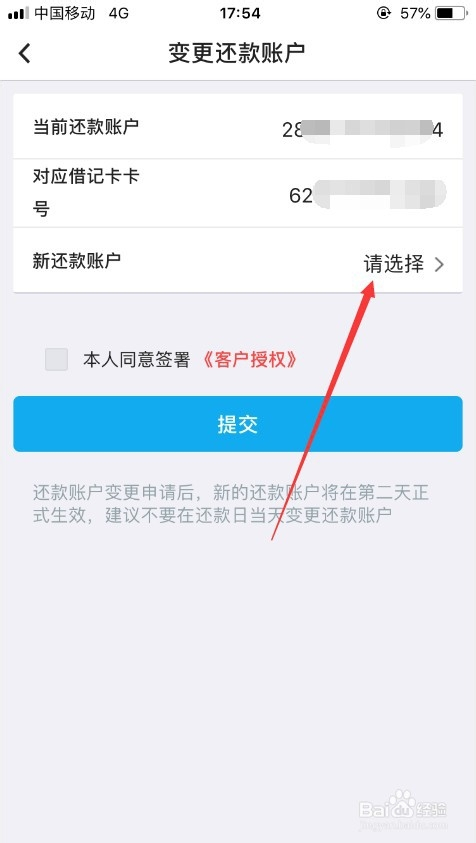 tips:还条目账户变动申请后,新的还条目账户将在第二天正式生效,建议不要在还条目日当天变动还条目账户。