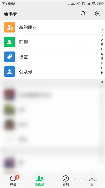进入微信本家儿界面,点击【通信录】功能。