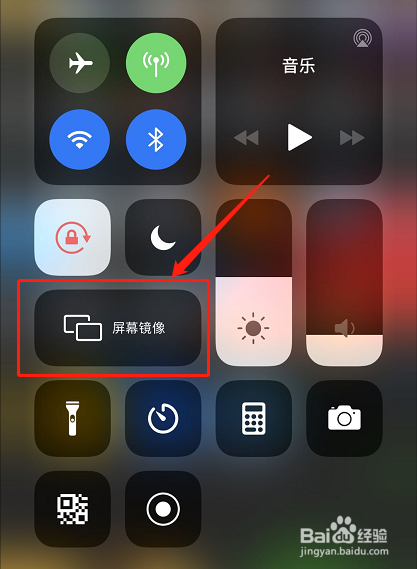 经由过程手势,在苹果手机上调出节制中间,点击“屏幕镜像”。