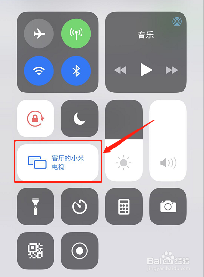 2、在苹果手机上调出节制中间,点击“屏幕镜像”毗连电视。