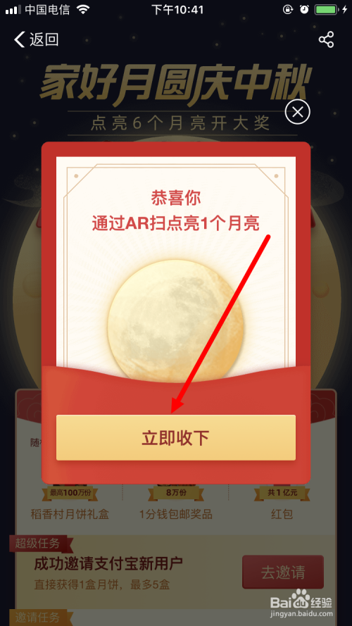进入 活动页面 后,直接就点亮了一个月亮。点击 当即收下 。