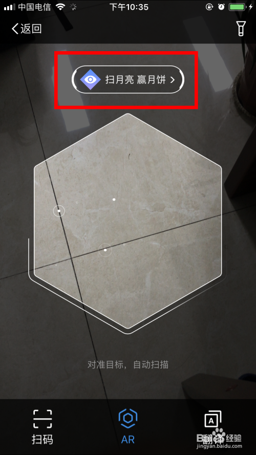 小编用AR扫月亮,点击 扫月亮,就会出来个AR框。