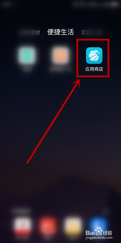 在手机桌面首页找到应用商铺图标单击