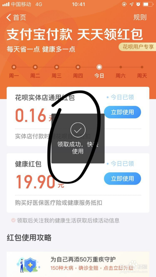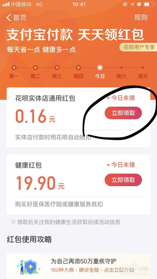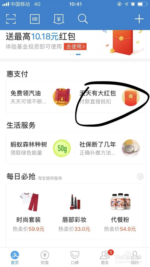 里面有花呗红包,点击领取,天天都可以领取哦,这样去实体店付条目市用花呗支付就可以主动扣除