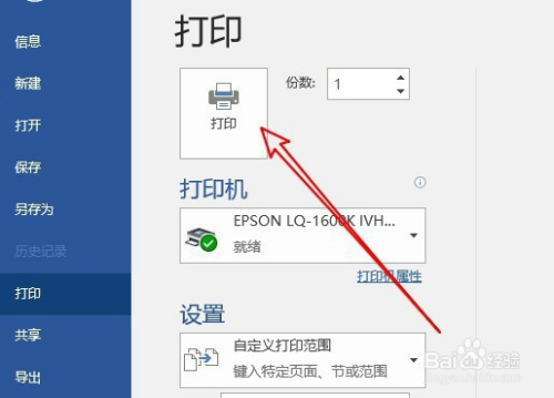 最后点击打印菜单中的“打印”按钮就可以了。