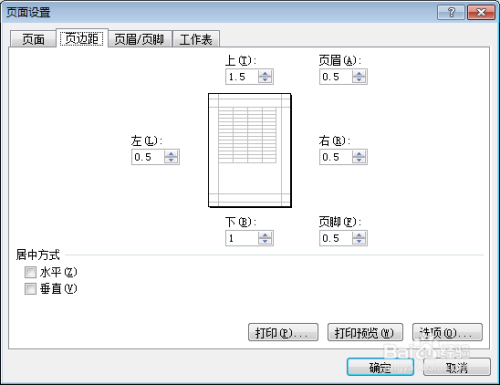 其设置的结果为行高16,列宽9 ,页面设置如下图所示。