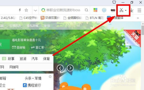 打开浏览器,找到右上角的铰剪图标