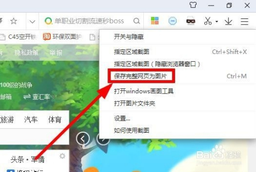 点击下拉菜单里的“连结完整网页为图片”