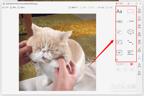 首先在右面的东西栏里面我们可以看到,上方有正规的添加文字和一些特别添加文字图形。