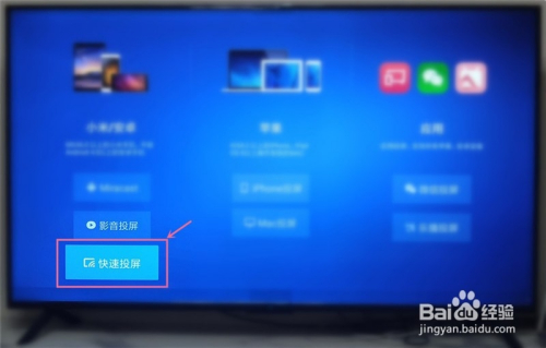 在无线投屏功能界面,点击“快速投屏”,电视进入期待毗连状况。