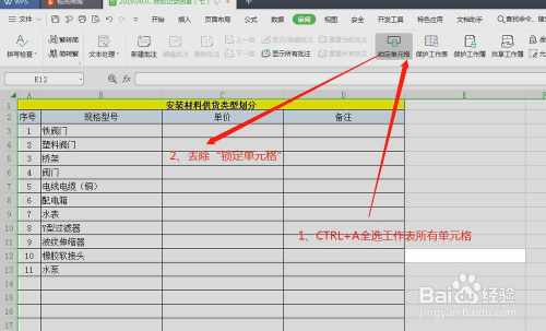 第一步:经由过程(核阅-锁定单位格)先消弭工作表所有单位格的锁定。目标为了避免消弭不想被锁定的单位格也被锁定。