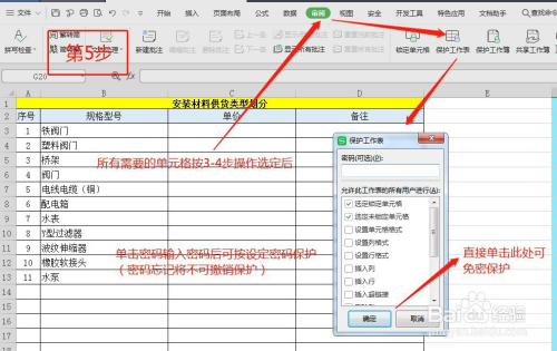 第三步:启用被选中的单位格庇护,可免密,也可加密(注重加密密码健忘后不成撤销庇护,被庇护的数据将无法再恢复可编纂)